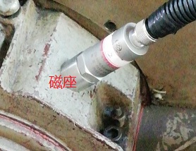 在這種不具備鉆孔攻絲的條件下,我們會建議客戶選用我們的SZ磁座,該磁座具有強(qiáng)力吸附在機(jī)殼表面的作用,SZ-6G磁電式速度傳感器用雙頭螺釘固定在磁座上后,磁電式速度傳感器也就可以安裝在測量位置。