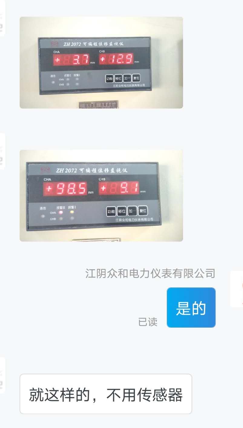 跟客戶(hù)解釋后,我給客戶(hù)報(bào)價(jià),并讓他確認(rèn),等他的回復(fù)。過(guò)了幾天,客戶(hù)聯(lián)系我,和用戶(hù)確認(rèn)過(guò)了,只要儀表,并把拍到的現(xiàn)場(chǎng)的照片發(fā)給我。隨后客戶(hù)就和我談合同的事情, ZH2072可編程位移監(jiān)視儀一般都有現(xiàn)貨,我查了確實(shí)有庫(kù)存,款到就可安排出廠調(diào)試和發(fā)貨事宜。