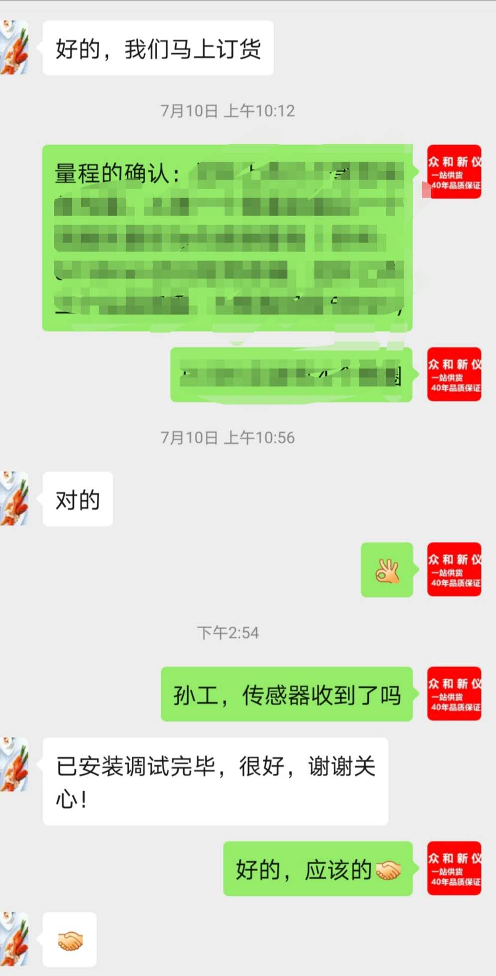 今天周一,我查到快遞單顯示貨已簽收,回訪用戶是否收到貨,孫工回復(fù)我說,已經(jīng)安裝調(diào)試完畢,很好,我放心了。