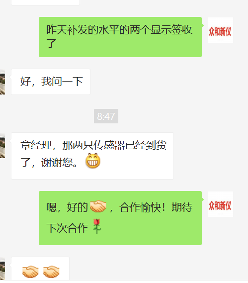 上周有個(gè)客戶換貨的兩個(gè)磁電式速度傳感器,我們通過(guò)加急補(bǔ)單,按計(jì)劃做好了,能按期發(fā)貨。因?yàn)闀r(shí)間緊張,貨不再發(fā)倉(cāng)庫(kù),要直接發(fā)現(xiàn)場(chǎng),跟客戶再次確認(rèn)了收貨人及收貨地址,并把發(fā)件運(yùn)單號(hào)拍給客戶。